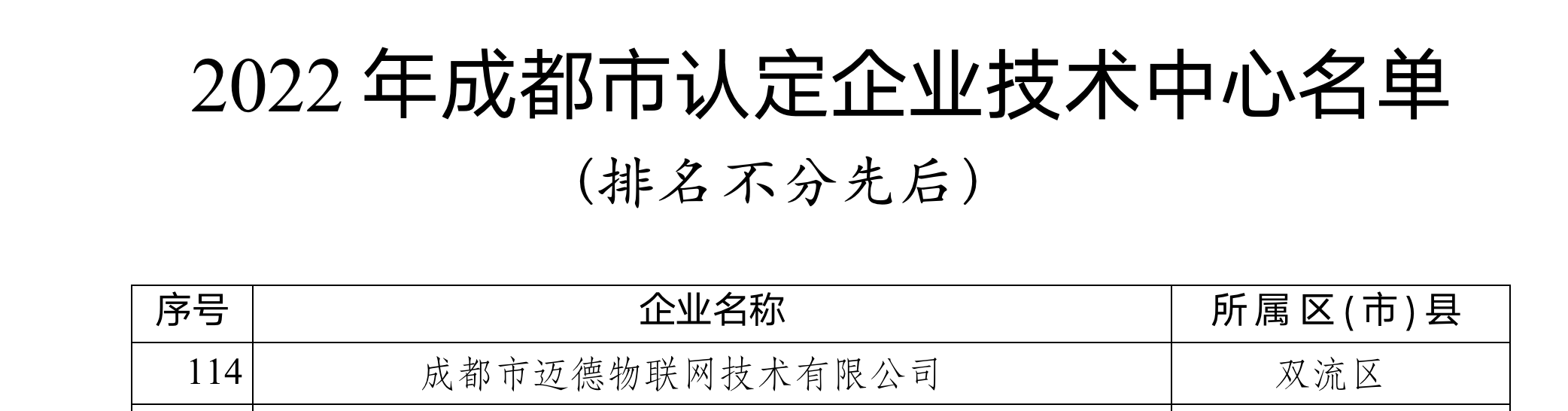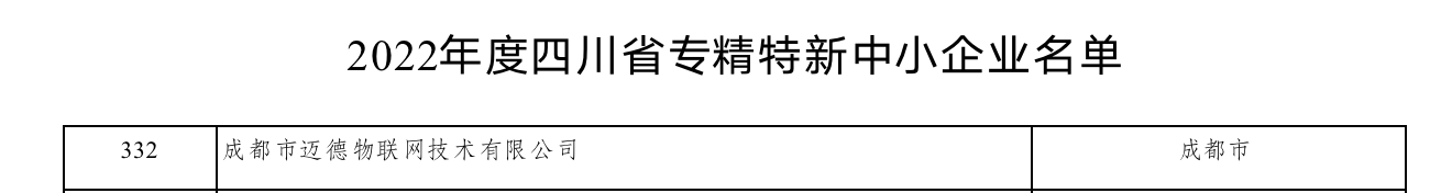 近日,四川省经济和信息化厅发布的《2022年度四川省专精特新中小企业名单》、成都市经济和信息化局发布的《2022年成都市认定企业技术中心名单》中,成都市迈德物联网技术有限公司皆在公布名单中,顺利通过认定。