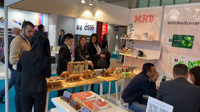 迈德此次亮相的是5.2 F088展台,在展台上,迈德精心布置了各类特色智能卡及电子标签产品,包括木卡、环保卡、腕带卡、戒指卡,手串卡等,这些产品不仅展示了迈德在智能卡领域的创新实力,也彰显了中国制造的魅力。